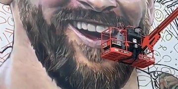 梅西的巨幅壁画在迈阿密落成,老板亲自上阵