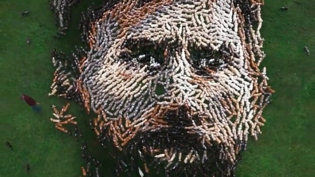 乐事祝贺梅西808球,用808只山羊拼成了梅西的头像