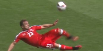 沙奇里在2016年欧洲杯对阵波兰 上演一记无解倒钩