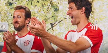凯恩穿着皮短裤,在穆勒的指导下学习吃白香肠