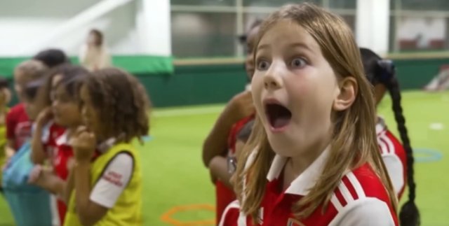 当哈宝闪现社区足球训练活动中心,小球迷高兴坏了