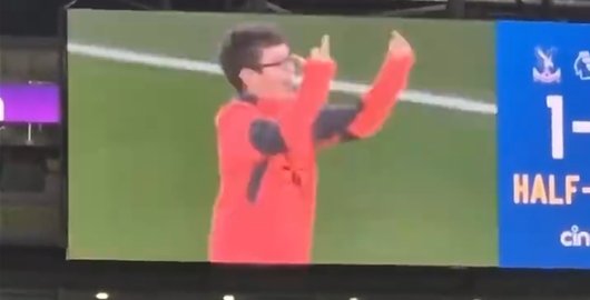 水晶宫小球迷在中场游戏打进点球后,疯狂挑衅客队