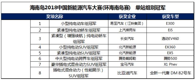 2018中国新能源汽车大赛(环海南岛赛)单站组别冠军