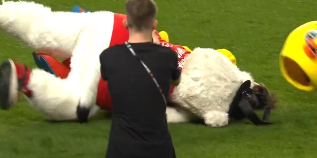 南特吉祥物金丝雀“遇袭”,头套都打飞了