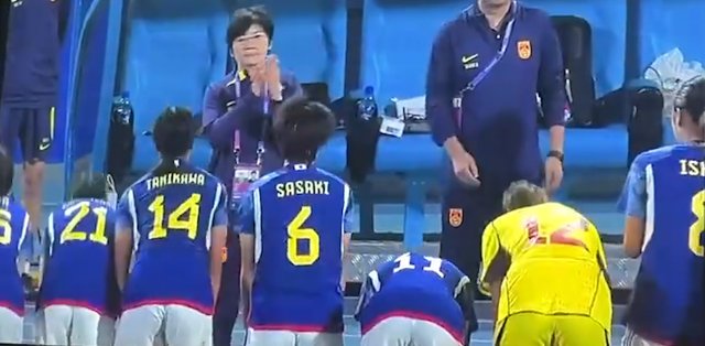日本女足集体向水庆霞及看台上的球迷鞠躬