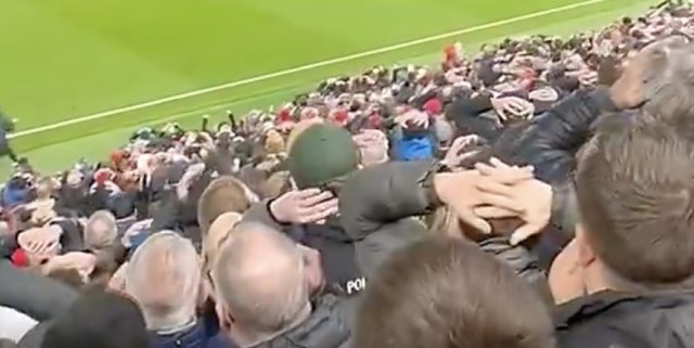 努涅斯射门柱时的球迷反应,动作过于整齐