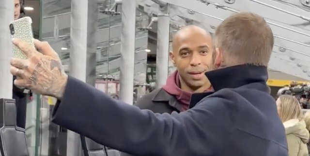 巴黎对阵米兰的场边,贝克汉姆和亨利玩起了自拍