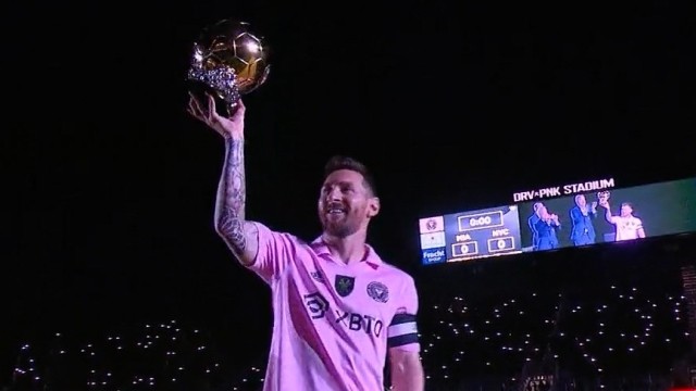 迈阿密盛大庆典致敬梅西,球王展示第8座金球奖!